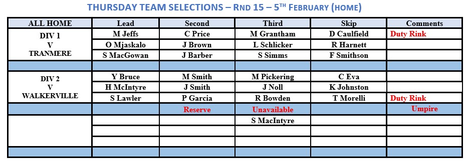 Round 15: Thursday 5th February