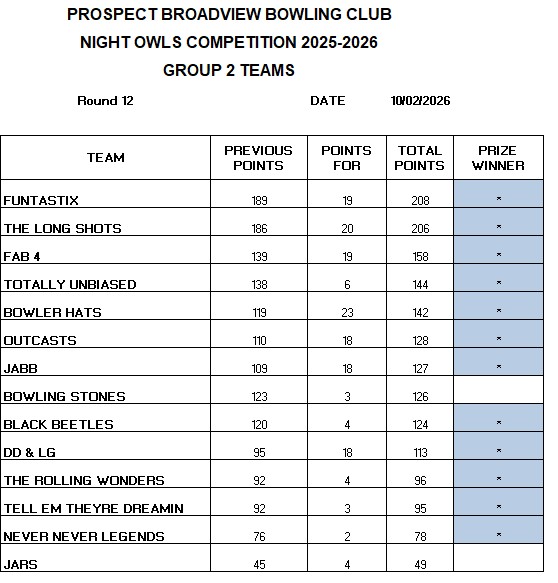 PENNANT - NIGHT OWLS - SOCIAL - INDOOR