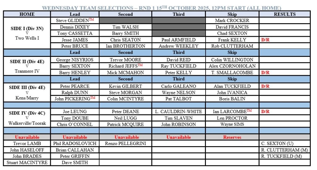 Round one – 15th October 2025
